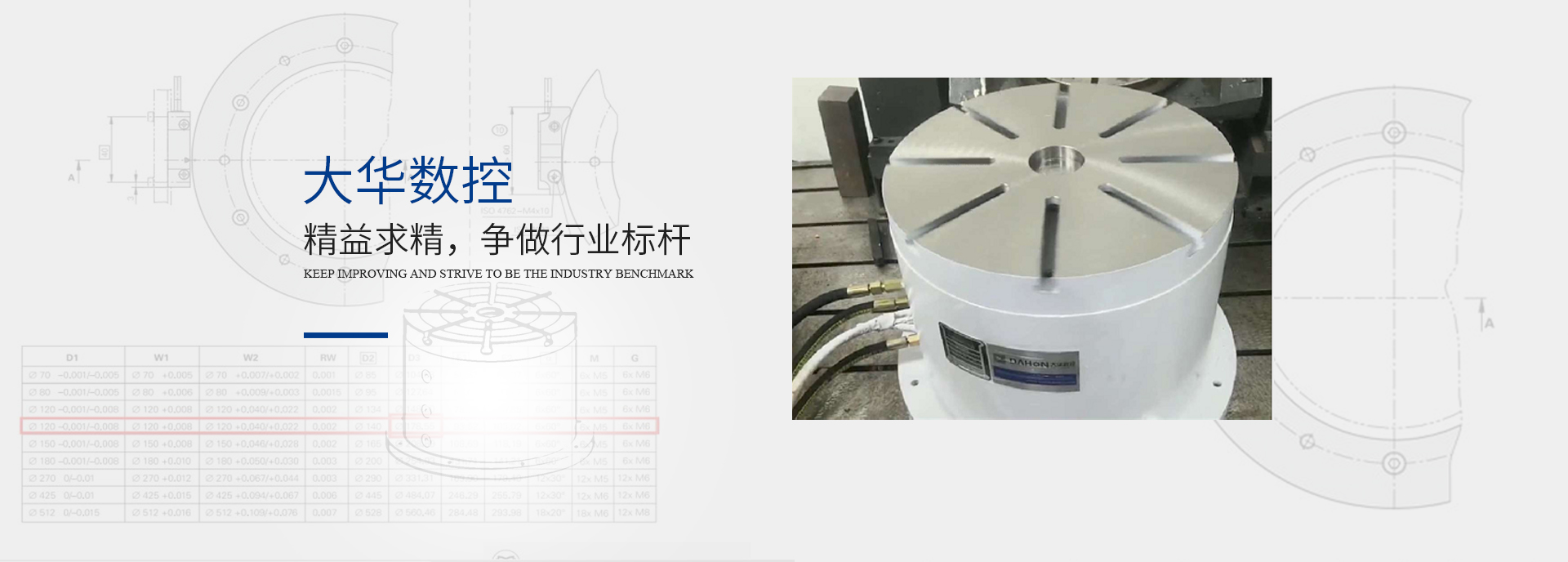 大華數(shù)控瞄準(zhǔn)高速、高精、數(shù)控機床對機床附件的迫切需求,以自主知識產(chǎn)權(quán)技術(shù)研發(fā)為核心,融合機床制造技術(shù)進行集成創(chuàng)新,與優(yōu)良配套加工制造企業(yè)緊密合作,堅持技術(shù)先導(dǎo)戰(zhàn)略,“大”研發(fā)、“精”制造、“高”技術(shù),“優(yōu)”產(chǎn)品,致力于核心技術(shù)的研發(fā)、推廣及應(yīng)用,將為數(shù)控機械的綠色、節(jié)能、環(huán)保、高精需求提供有力支撐,精心打造“大華”品牌,目標(biāo) —— 成為行業(yè)領(lǐng)軍者!